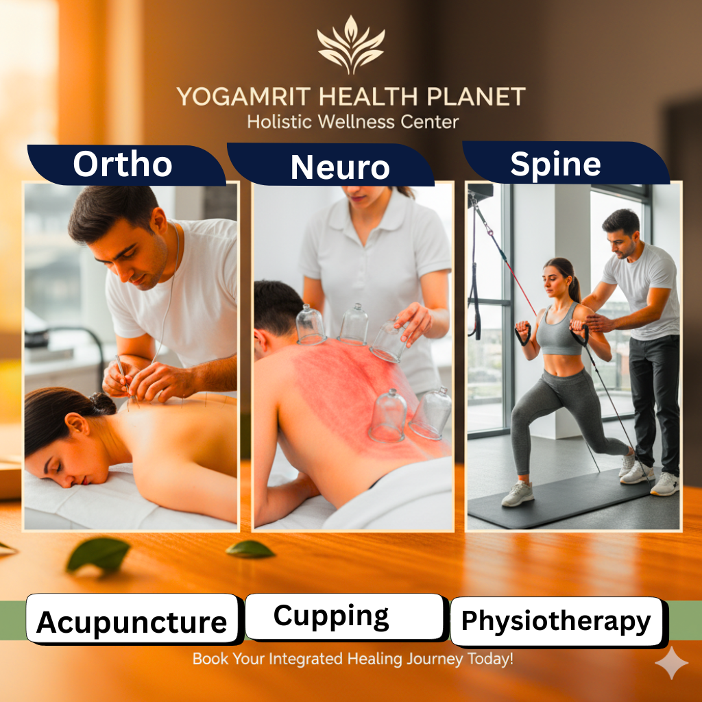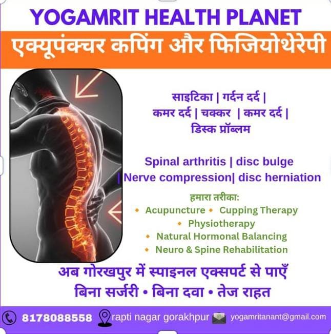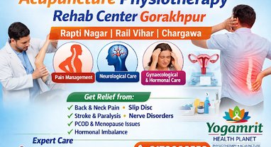 Yogamrit Health Planet Acupuncture, Physiotherapy & Rehabilitation Centre | Gorakhpur Yogamrit Health Planet is a trusted Pain Management & Rehabilitation Centre in Gorakhpur offering advanced Acupuncture, Physiotherapy and Neuro Rehab services. We specialize in chronic pain treatment including back pain, neck pain, slip disc, sciatica, knee pain, arthritis and frozen shoulder. Our integrated approach helps in natural pain relief without long-term medicines. We provide expert care for Neurological issues such as paralysis, facial palsy, neuropathy, cervical & lumbar spondylosis, and spinal cord related problems. Specialized therapy is available for Gynaecological & Hormonal disorders including PCOD, irregular periods, excessive bleeding.